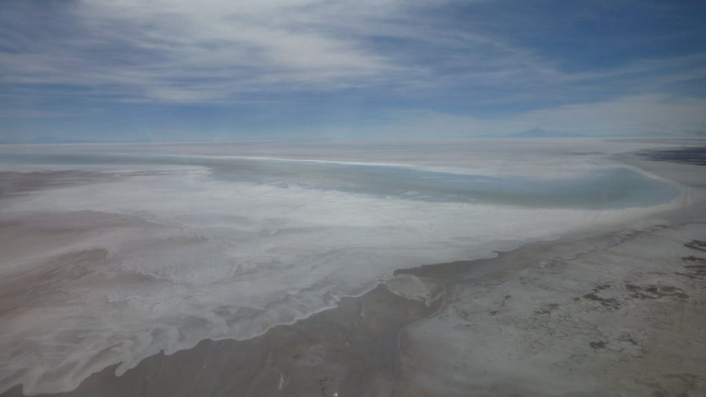 飛行機からのウユニの映像です。