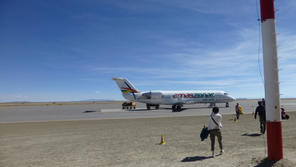 ウユニ塩湖へ行くにはラパスから飛行機が一番です。